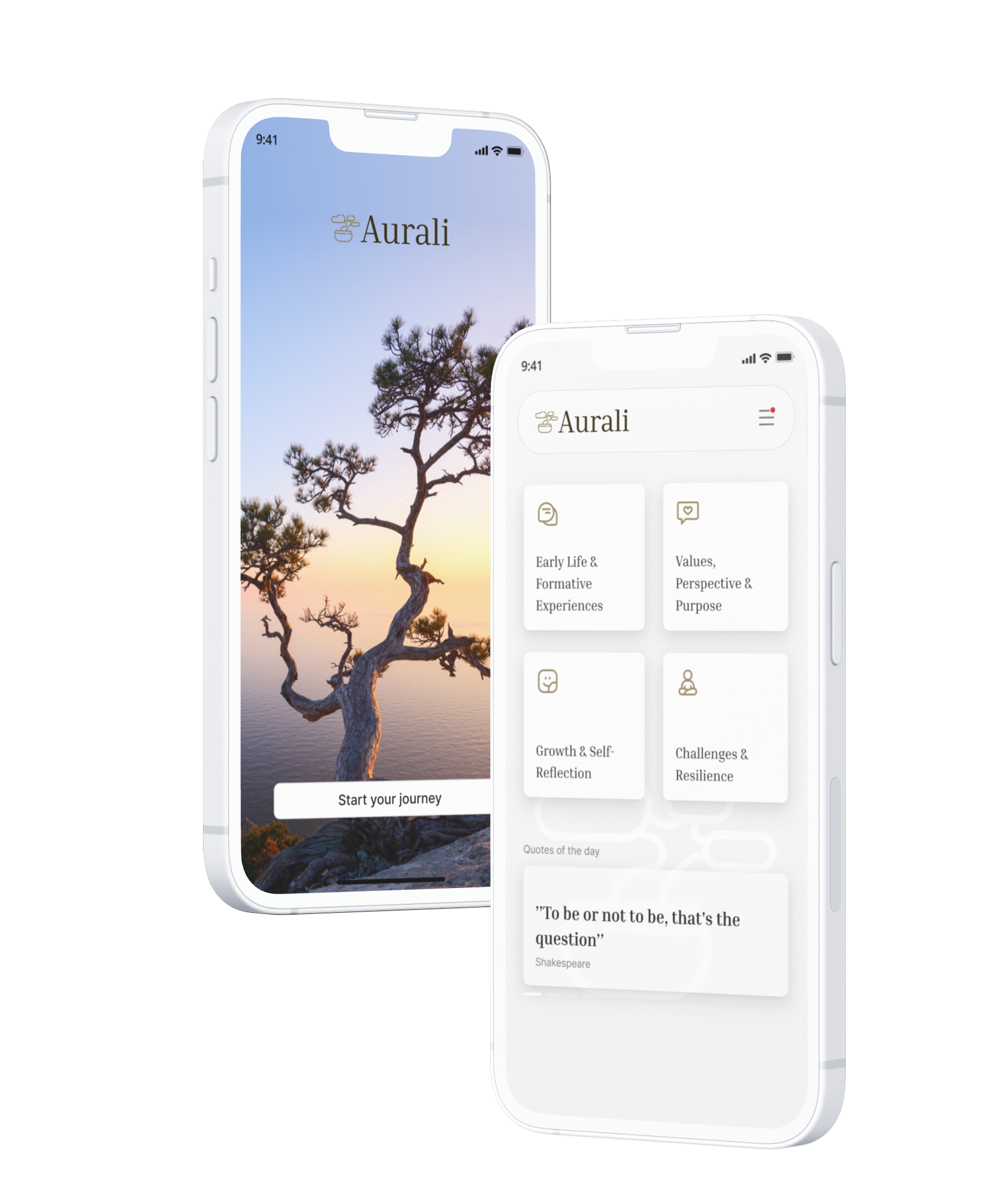 A Aurali combina a reflexão guiada por IA com uma visão humana opcional para apoiar a autoconsciência ao longo do tempo.